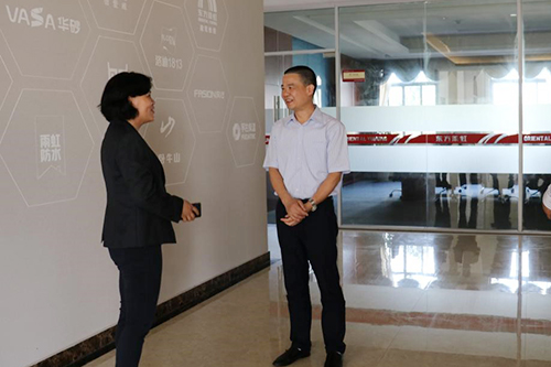 5月16日上午,建德市委常委、組織部長(zhǎng)王江一行調(diào)研東方雨虹杭州生產(chǎn)基地。 期間,東方雨虹杭州生產(chǎn)基地廠長(zhǎng)兼建設(shè)總指揮李景絨帶領(lǐng)調(diào)研組參觀了杭州東方雨虹黨員活動(dòng)室,詳細(xì)介紹了黨建工作的開(kāi)展情況,隨后帶領(lǐng)調(diào)研組深入一線,參觀防水涂料、砂漿等生產(chǎn)車間。