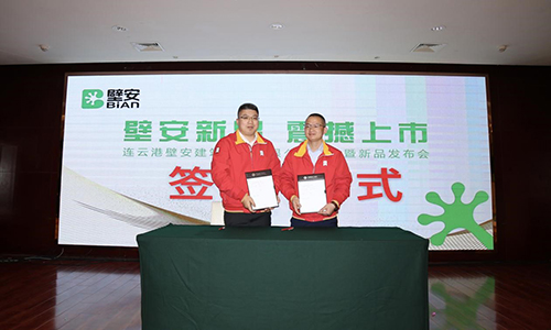 民建壁安粘合劑事業(yè)部總經(jīng)理陳明先生代表壁安品牌與連云港壁安建筑材料有限公司董事長汪奇先生進行授權簽約。