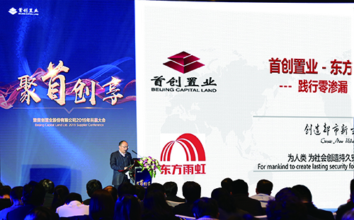1月16日下午,首創(chuàng)置業(yè)股份有限公司召開2019年共贏大會。本次會議以“聚首創(chuàng)享”為主題,來自全國的170余位首創(chuàng)供應商代表齊聚北京,東方雨虹工程建材集團總裁張志萍、工程建材集團北方區(qū)總經(jīng)理楊海明、總工程師許寧等受邀出席。東方雨虹與中建五局等17家企業(yè)共同入選2018年度首創(chuàng)置業(yè)優(yōu)秀供應商。