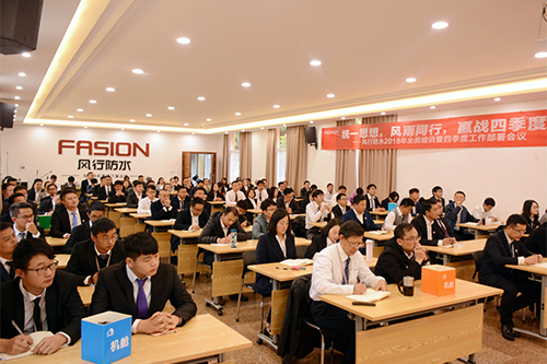 10月12日,風(fēng)行防水召開(kāi)2018年全員培訓(xùn)暨四季度工作部署會(huì),會(huì)議以“統(tǒng)一思想、風(fēng)雨同行、贏戰(zhàn)四季度”為主題。