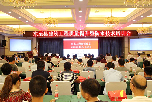 7月12日,安徽省東至縣舉行建筑工程質量提升暨防水技術培訓會,來自東至縣的住建委、建筑施工企業(yè)、建設、監(jiān)理、設計單位100多人參加了本次會議。東方雨虹受邀參加本次交流會議。