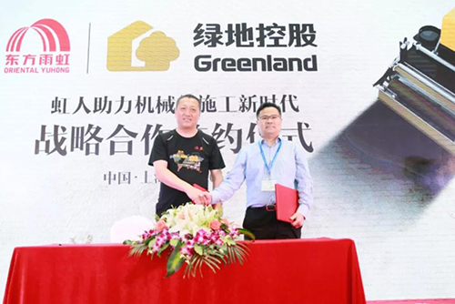 5月28日下午,東方雨虹“智能制造:虹人助力機(jī)械化施工新時代”發(fā)布會在上海舉行。發(fā)布會中,東方雨虹先后與綠地集團(tuán)、正榮集團(tuán)舉行戰(zhàn)略合作簽約儀式。