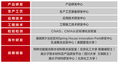 東方雨虹在美國(guó)費(fèi)城成立防水涂料全球卓越研究中心,攜手美國(guó)里海大學(xué)乳液聚合實(shí)驗(yàn)中心開發(fā)項(xiàng)目,與美國(guó)瀝青科技公司合作“改性瀝青研發(fā)項(xiàng)目”等,并與巴斯夫、陶氏、拜耳、塞拉尼斯、杰斯曼、荷蘭愛華、日本KANEKA等多家大型化工公司開展研發(fā)合作,汲取國(guó)外前沿技術(shù)。 東方雨虹將把該基地打造成為企業(yè)產(chǎn)研結(jié)合的國(guó)際化中轉(zhuǎn)站,加強(qiáng)與國(guó)際一流企業(yè)的溝通與合作,以嶄新的姿態(tài)贏得來(lái)自國(guó)際市場(chǎng)的更多肯定,同時(shí)促進(jìn)在京高科技企業(yè)、大學(xué)院所等機(jī)構(gòu)利用全球資源開展國(guó)際化創(chuàng)新,為發(fā)掘自身國(guó)際合作特色優(yōu)勢(shì)貢獻(xiàn)力量。