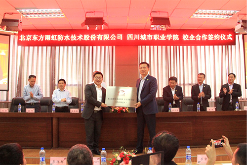 4月3日,東方雨虹防水技工培訓學校(四川校區(qū))成立大會暨東方雨虹與四川城市職業(yè)學院合作簽約儀式在城市職業(yè)學院學術報告廳舉行。 東方雨虹集團總裁向錦明、集團工程總監(jiān)劉學峰、四川東方雨虹總經理張帆、東方雨虹集團培訓學院副院長徐志明、四川城市職業(yè)學院院長王世倫、副院長趙齊陽、四川城市職業(yè)學院對外合作部部長敬陽、四川城市職業(yè)學院建筑工程學院院長劉洋等以及300余名學生代表見證了此次簽約儀式。