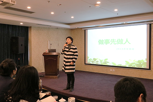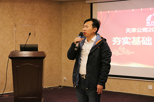 集訓(xùn)開始,天津東方雨虹董事長(zhǎng)兼總經(jīng)理文敬芳女士作動(dòng)員講話,通過《做事先做人》的主題分享,她期望參訓(xùn)人員開闊思路、突破自我、全心全意為客戶服務(wù);在2018年,大膽探索、勇于創(chuàng)新,迎接新的挑戰(zhàn)。