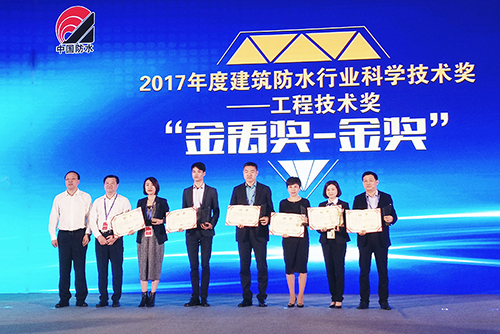 12月7日,全國建筑防水行業(yè)質(zhì)量提升工作大會暨2017年建筑防水行業(yè)年會在海口召開。大會公布中國建筑防水工程“金禹獎”獲獎名單,東方雨虹以兩金一銀的成績名列榜單首位。應(yīng)用技術(shù)中心總工助理林海俠女士代表東方雨虹領(lǐng)獎。