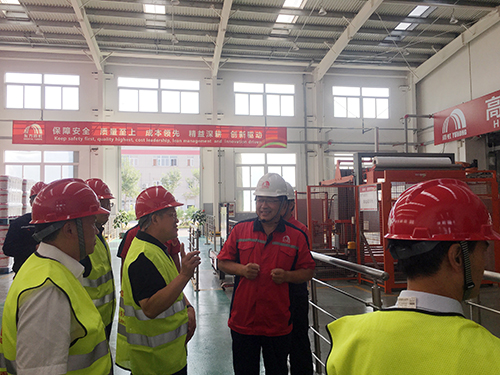 馬到原向考察團(tuán)介紹了唐山東方雨虹的整體情況、建設(shè)規(guī)模、企業(yè)優(yōu)勢(shì)等,重點(diǎn)講解砂漿車(chē)間的生產(chǎn)設(shè)備、工藝、產(chǎn)品等情況,并陪同考察團(tuán)參觀了砂漿車(chē)間的德國(guó)高效旋轉(zhuǎn)混合機(jī)、八口旋轉(zhuǎn)包裝機(jī)、高位碼垛機(jī)等國(guó)際先進(jìn)裝備。