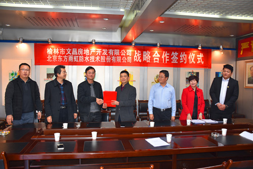 近日,東方雨虹與榆林市文昌集團簽訂了集團戰(zhàn)略合作協(xié)議。東方雨虹工程渠道西北事業(yè)部總經(jīng)理楊海明、陜西省總經(jīng)理劉彬,文昌集團副總經(jīng)理張東亮、副總經(jīng)理劉銳、總工程師劉志雄、采購部總經(jīng)理王二虎共同出席了本次簽約儀式。 榆林市文昌集團成立于2000年,下設建筑公司、房地產(chǎn)開發(fā)公司、物業(yè)公司等10個子公司,是集建筑施工、安裝、房地產(chǎn)開發(fā)、裝修裝飾和商貿(mào)為一體的綜合性企業(yè)集團。 東方雨虹憑借強大的生產(chǎn)能力、完善的防水產(chǎn)品體系和專業(yè)的服務團隊贏得了文昌集團的認可和贊許,雙方將共同打造優(yōu)質工程,為人類為社會創(chuàng)造持久安全的環(huán)境。