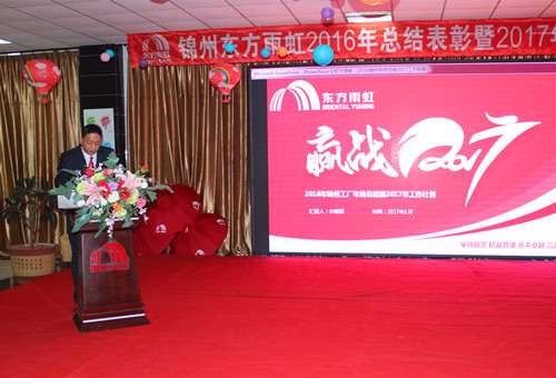 1月19日上午,東方雨虹錦州生產(chǎn)基地舉行2016年度總結(jié)表彰暨2017年度工作部署大會,當?shù)卣I(lǐng)導、全體員工及部分家屬齊聚一堂,分享工作經(jīng)驗,表彰先進,齊頭并進,贏戰(zhàn)2017。