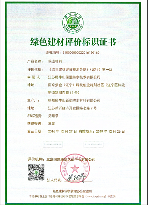 12月23日,全國綠色建材評價標識管理信息平臺公布了通過綠色建材評價企業(yè)的名單,臥牛山公司的石墨改性模塑聚苯板、模塑聚苯板及保溫砂漿等產(chǎn)品喜獲“三星級綠色建材評價標識”。