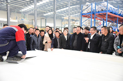 向鋒帶領(lǐng)參觀組參觀卷材生產(chǎn)線