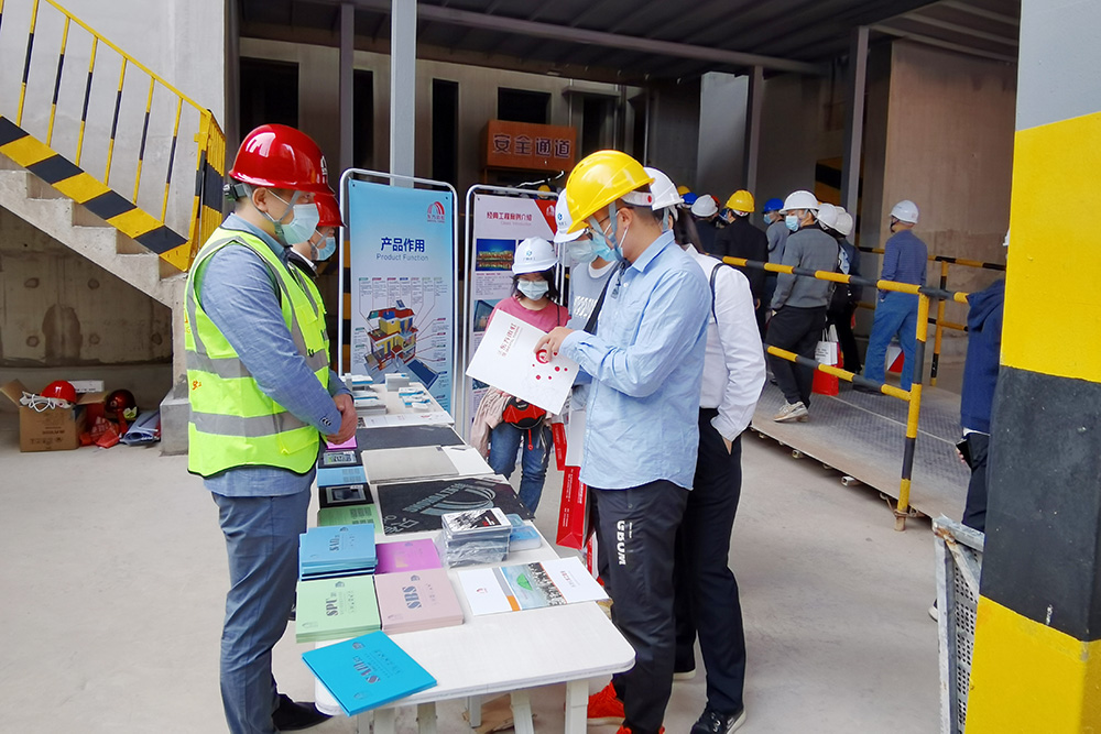 會上,東方雨虹設(shè)立展位,向與會人員介紹了地下室底板預鋪反粘系統(tǒng),非固化橡膠瀝青防水涂料復合瀝青類卷材系統(tǒng),F(xiàn)D外墻內(nèi)保溫復合系統(tǒng)等,并現(xiàn)場展示實體樣板間、模型,普及講解建筑建材系統(tǒng)解決方案的施工工藝及安全操作注意事項。